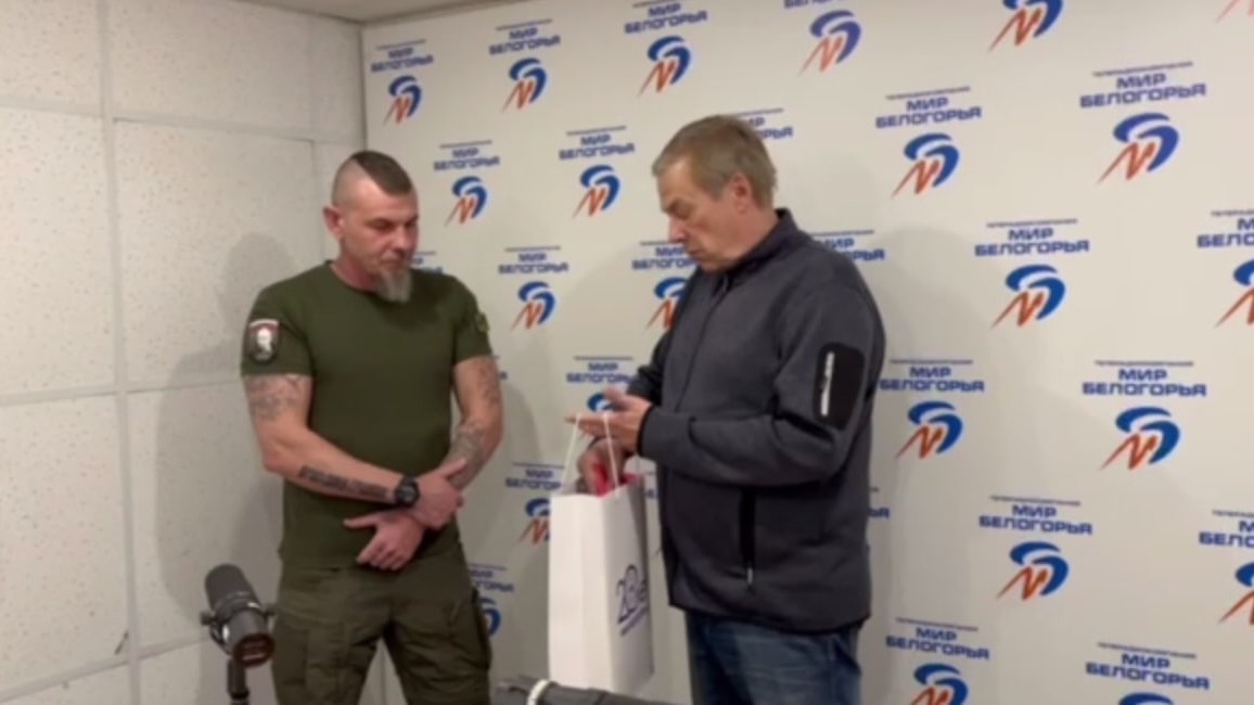 Их от «Радио Z» телерадиокомпании «Мир Белогорья» одному из командиров бригады вручил полковник, военный обозреватель и эксперт программы «Фронтовая полоса» Геннадий Алёхин.