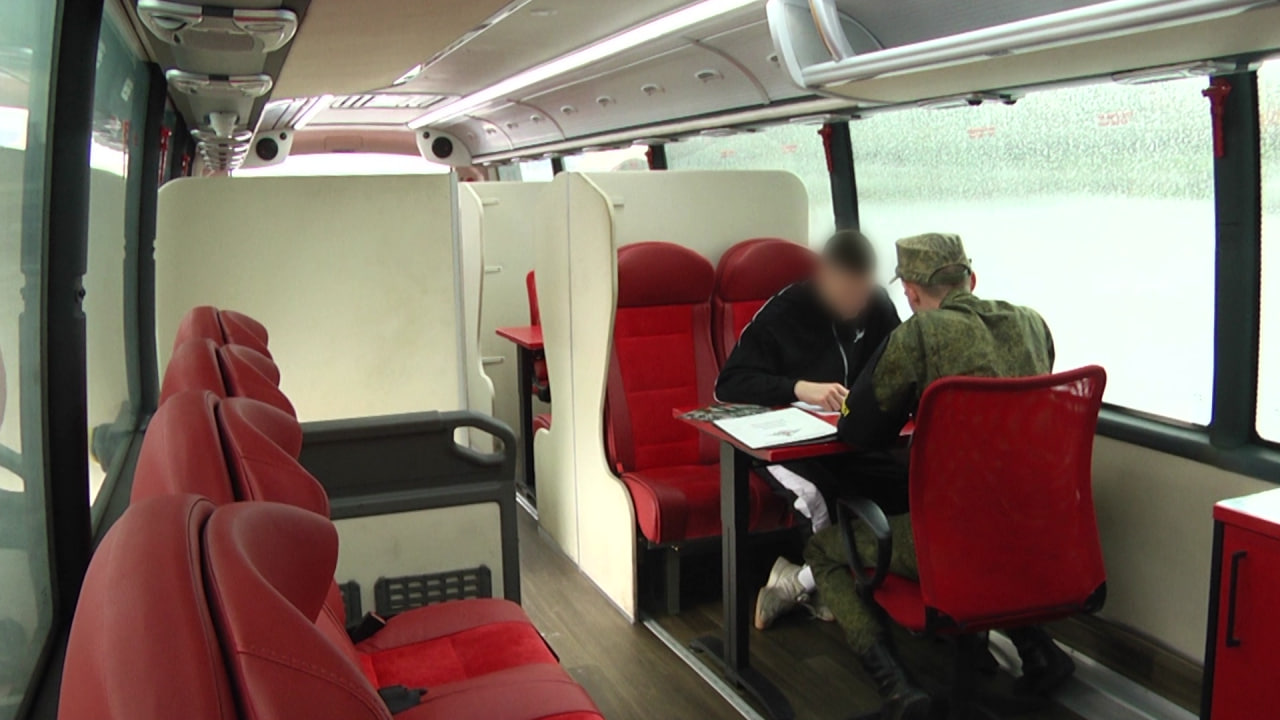 Фото: Мир БелогорьяНа борту спецавтобуса инструктор ответит на вопросы – как пополнить ряды Российской Армии и даст актуальную информацию.