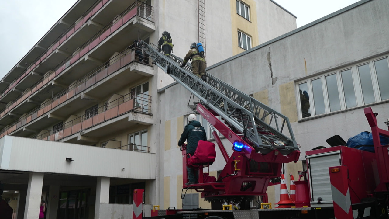 По легенде, из-за неосторожности во время сварочных работ в палате произошло возгорание. Персонал и пациенты покинули здание самостоятельно. «Лежачего» больного эвакуировали спасатели. Ещё один человек спустился по развёрнутой автолестнице.