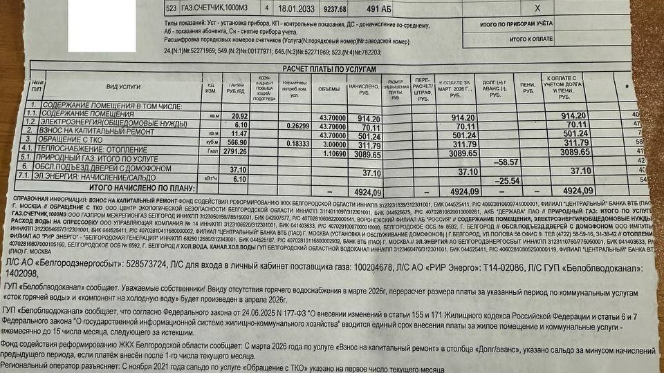Белгородцы жалуются на пришедшие квитанции без перерасчёта