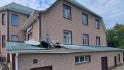 В здании выбиты окна и посечён фасад, также повреждены два легковых автомобиля, припаркованные рядом с местом происшествия.
