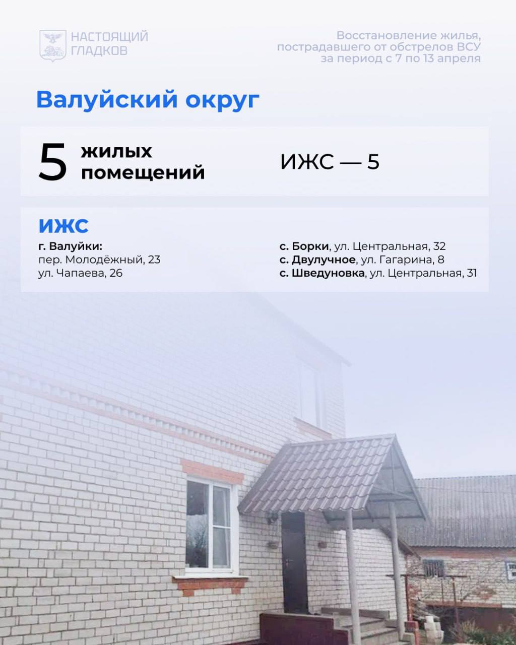Список адресов восстановленных домов опубликовал Вячеслав Гладков.