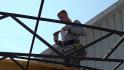 «Вырезается карта ямы. Затем разогревается инфракрасными горелками, добавляется эмульсия битумная. Потом это всё перемешивается. На горячую основу закатываем катком», – рассказал начальник участка подрядной организации Иван Железников.