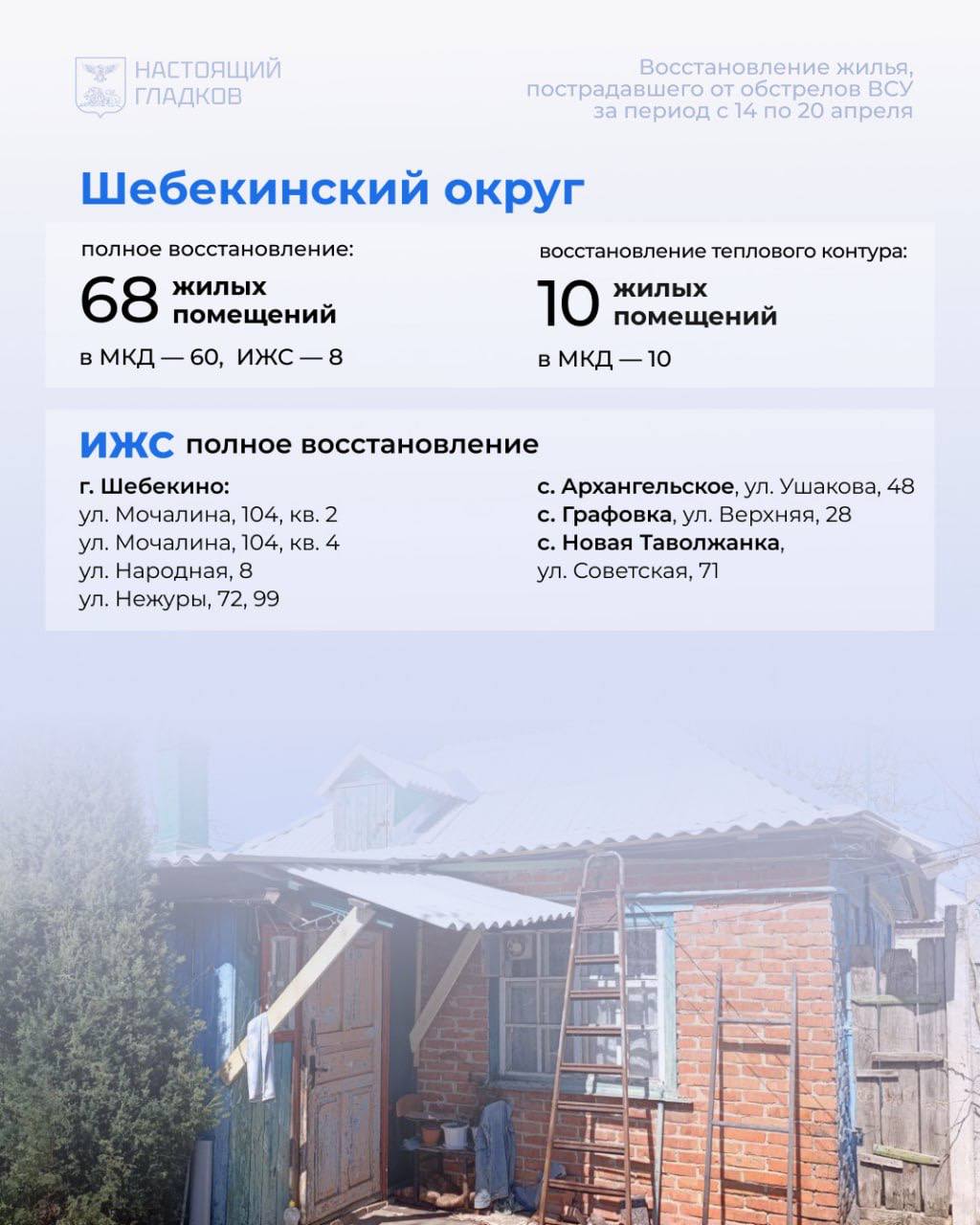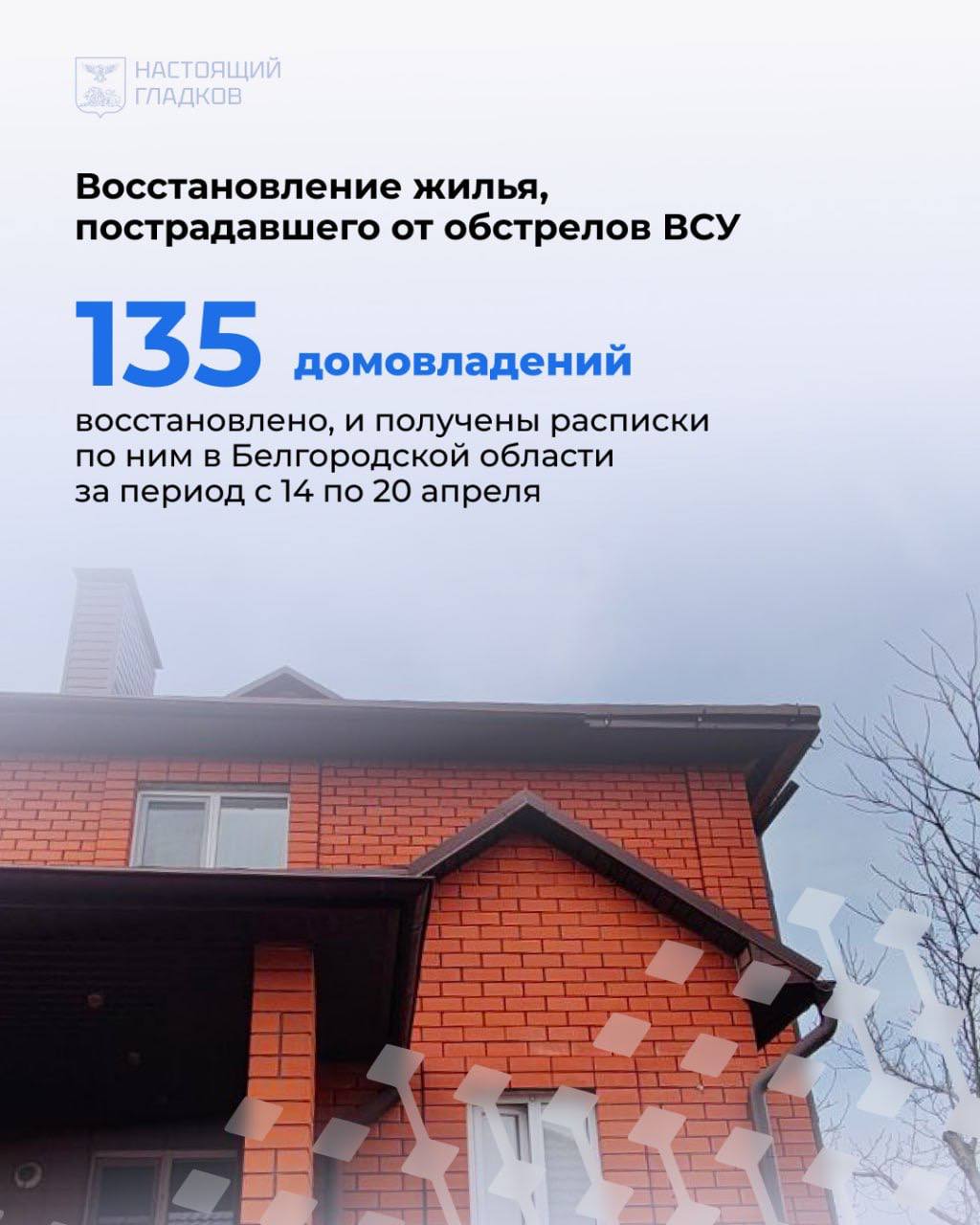 «Со следующей недели мы максимально увеличиваем восстановление по Шебекинскому округу. Жду результат переговоров главы муниципалитета со строительными организациями с целью увеличения количества сданных после восстановления жилых помещений в Борисовском районе», – написал глава региона.