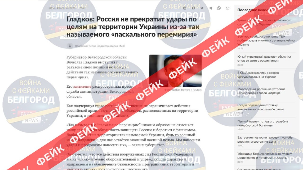 Отмечается, что махинаторы работают топорно, они не удосужились даже сопоставить даты. На одном фейковом ресурсе новость датирована 1-м апреля, на другом – 10-м апреля, при том, что Президент России объявил о пасхальном перемирии только 19-го числа, в канун Пасхи.