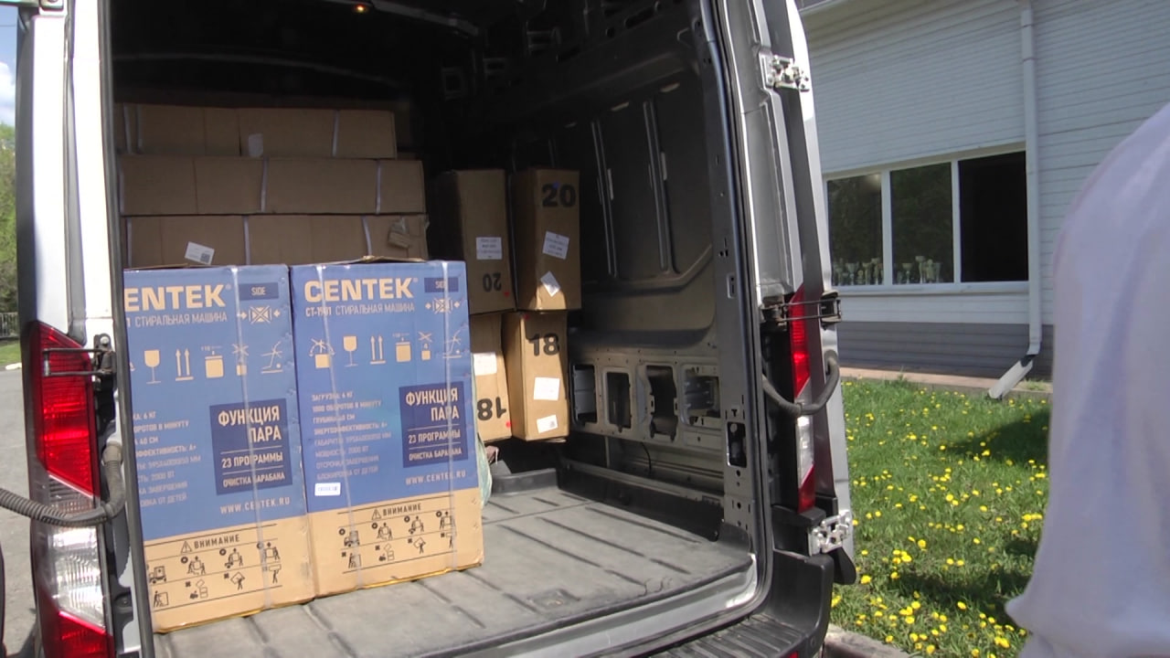 Жителям передали велосипеды и самокаты для детей разных возрастов. Стиральные машинки с большой загрузкой, холодильники.