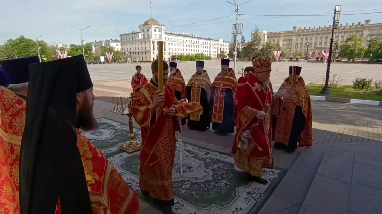 В часовне в честь святого князя Владимира на Соборной площади митрополит Иоанн совершил литию по павшим воинам и невинным жертвам Великой Отечественной войны.