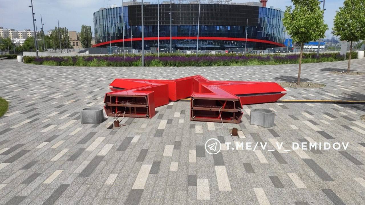Сегодня возле Белгород-арены упала «Звезда». Вчера сильный ветер не выдержали конструкция «Сердце» на Арбате и кит в парке Победы.