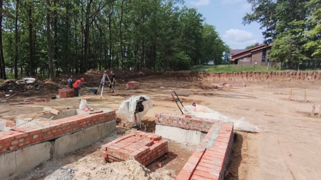 Строители уже завершили монтаж фундамента, сейчас засыпают котлован, устанавливают подпорную стену, прокладывают сети водоснабжения и водоотведения.