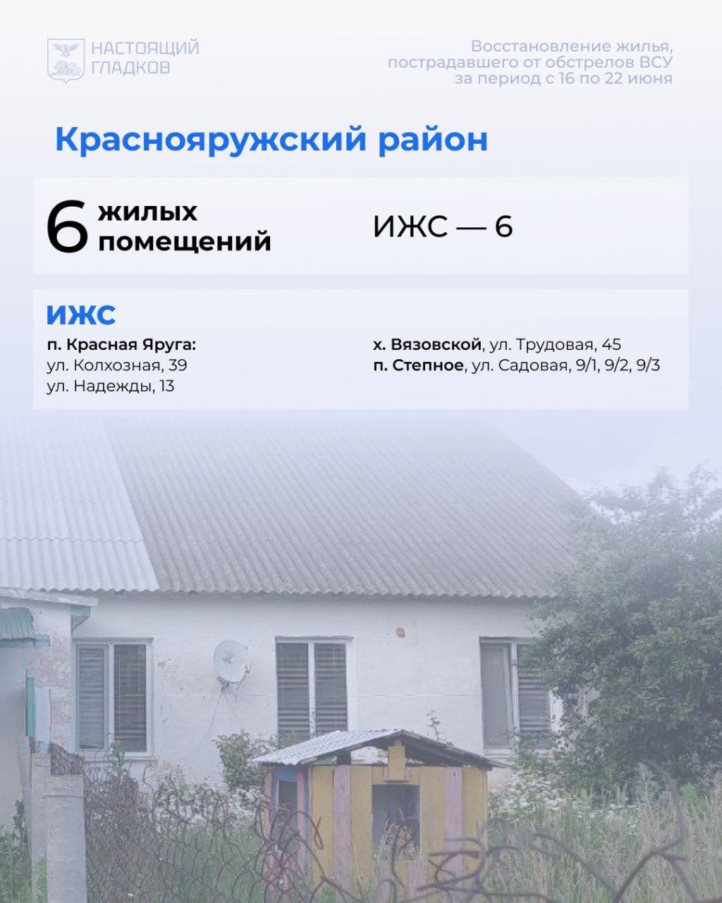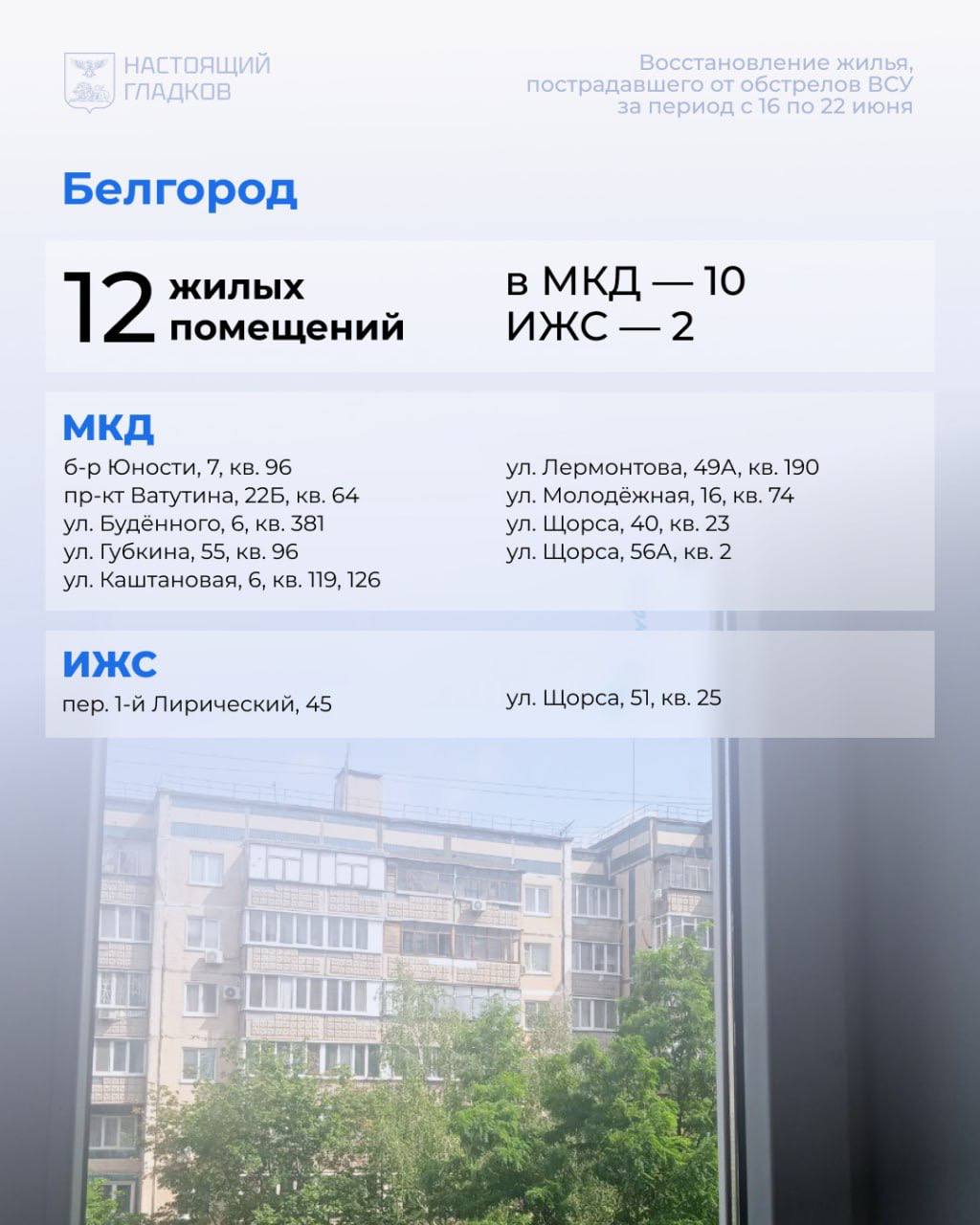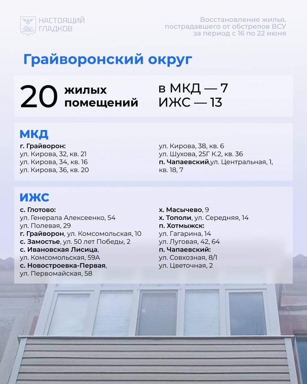 Список адресов, по которым восстановлены дома, опубликовал Вячеслав Гладков.
