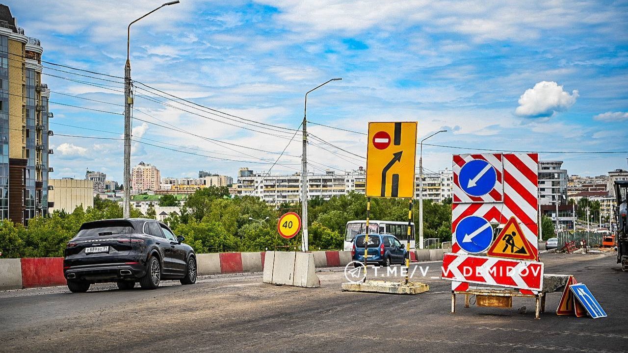 Прямой проезд по мосту остаётся открытым: движение возможно в направлении улиц Победы и Костюкова по одной полосе.