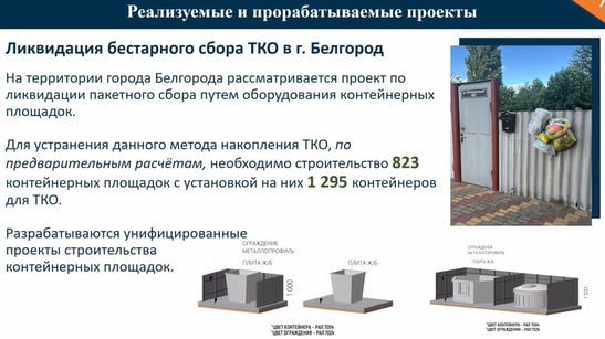 В Старом Осколе к воплощению проекта уже приступили, в этом году установили 18 площадок для сбора КГО. Там, где возможность стационарной установки отсутствует, задачу решают с помощью «кочующих бункеров». 48 таких бункеров дважды в неделю будут перемещать между районами МКД. Всего до конца июля в городе появятся 52 бункера для сбора крупногабаритных отходов. Если эксперимент покажет свою эффективность, его распространят на всю область, рассказал Довгалюк.