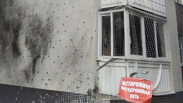 От прилёта снаряда повреждены фасад и остекление двух многоквартирных домов.