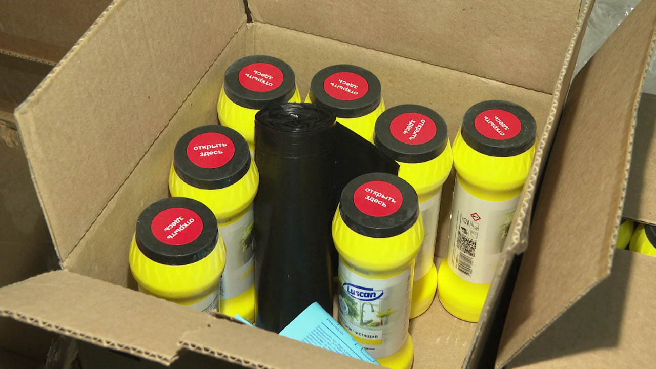 В гуманитарный груз общим весом 11 тонн вошли бытовая химия, шампуни, гели и другие средства личной гигиены.