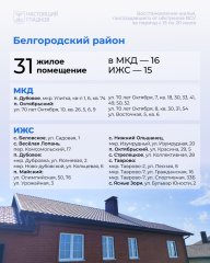 В Белгородском районе за неделю полностью восстановили 31 объект. Также за этот период выявлено 38 повреждённых жилых помещений и 23 автомобиля.