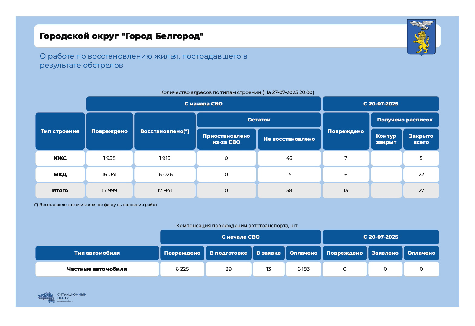 С 20 по 27 июля ни один автомобиль не пострадал. Всего на восстановление ТС подано 13 заявок.