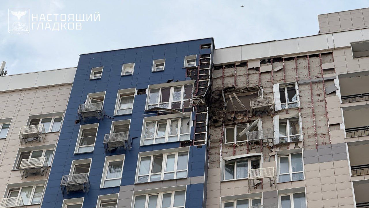 Повреждены остекление порядка десяти квартир и фасад, посечены 24 автомобиля. Продолжается подомовой обход.