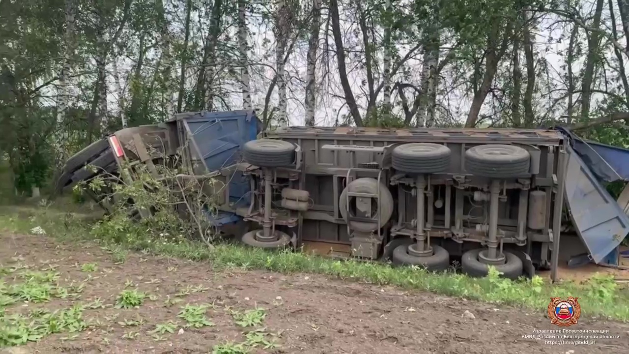 44-летний водитель грузовика на высокой скорости не справился с управлением и съехал в кювет. ТС врезалось в деревья и опрокинулось.