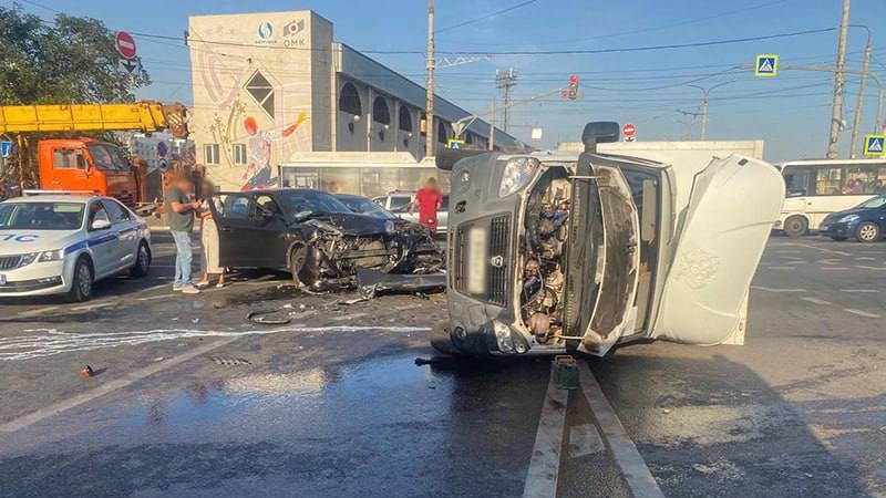 Водитель «Газели», проигнорировав «красный», получил удар в бок от двух легковушек и перевернулся.