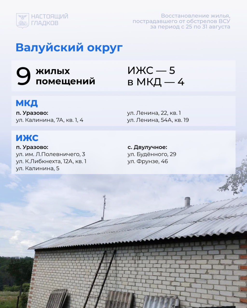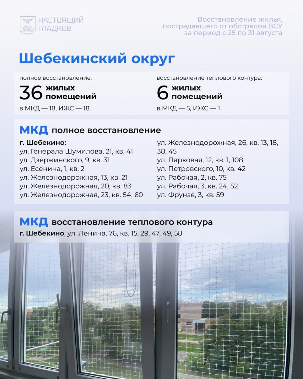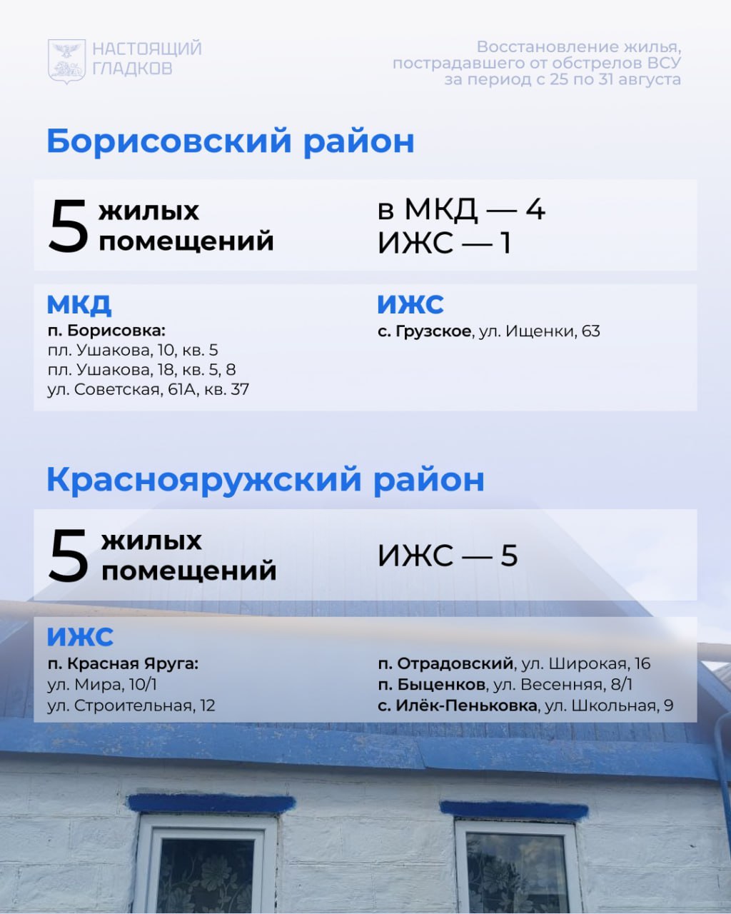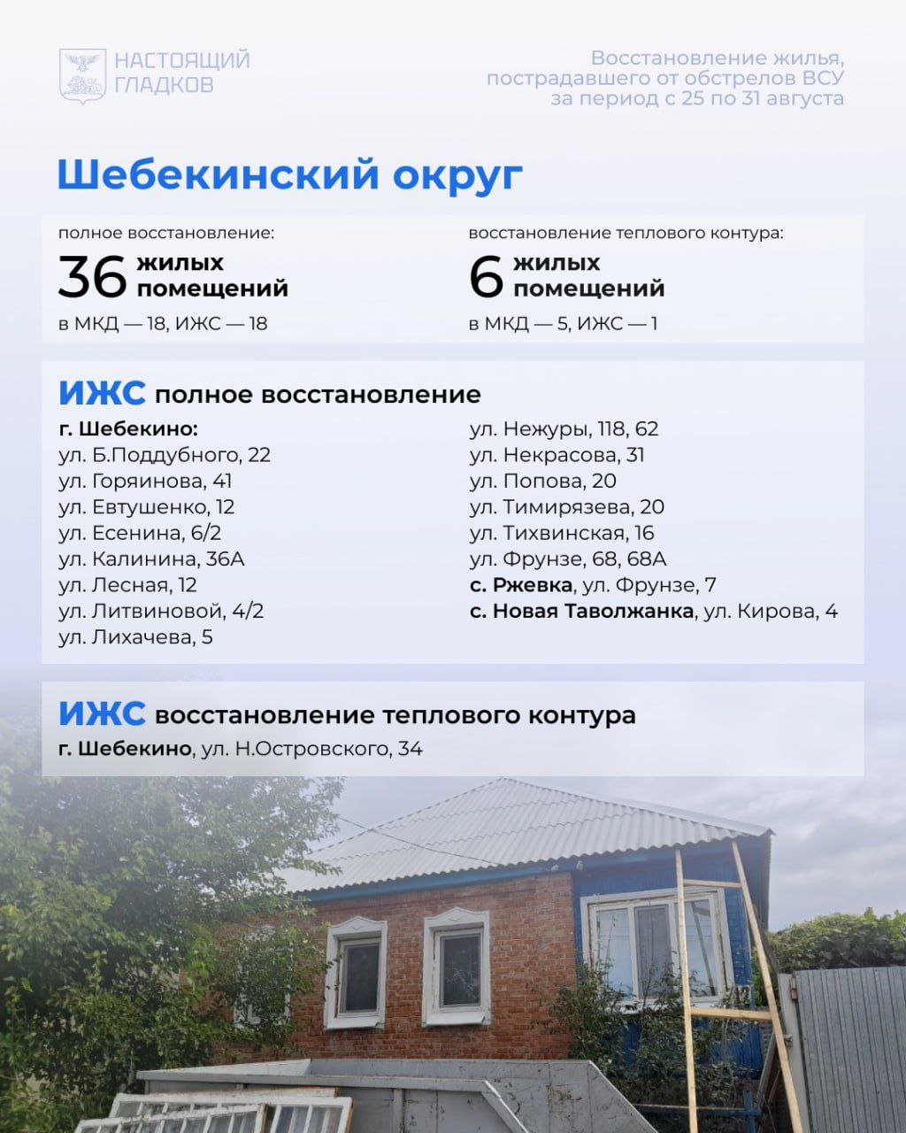 Список адресов, по которым восстановлены дома, опубликовал Вячеслав Гладков.