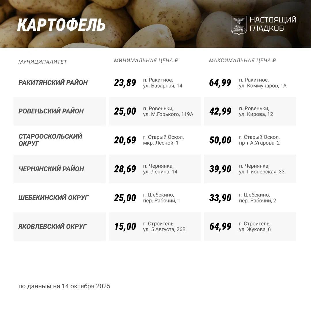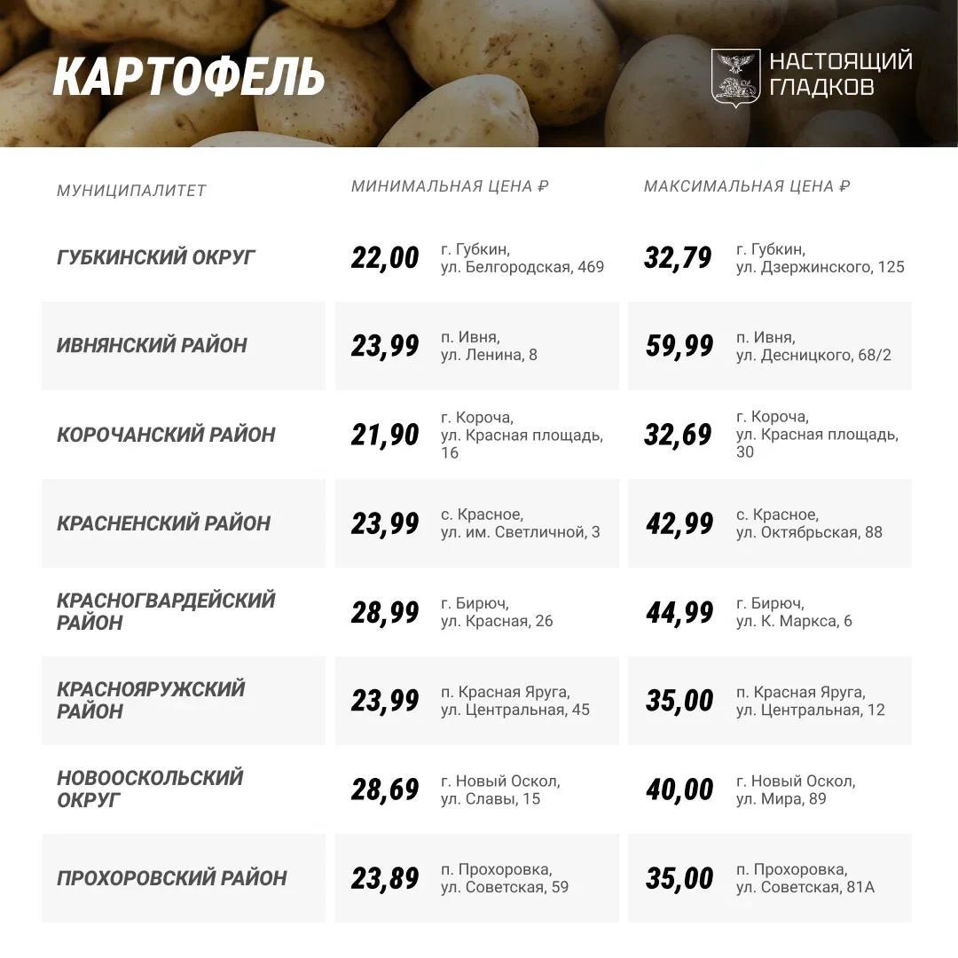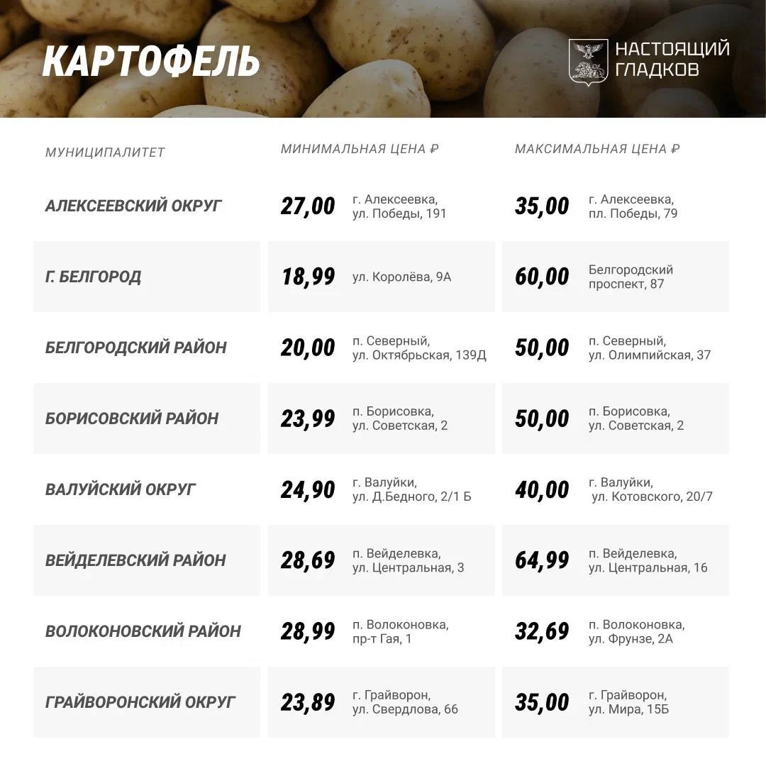 Самый дешевый картофель оказался в одной из торговых точек с Строителя, самый дорогой – тоже в Строителе, но в другом магазине, а также в одной из торговых точек Ракитного. Причем разброс цен на «второй хлеб» – более, чем в четыре раза: с 15 до почти 65 рублей.