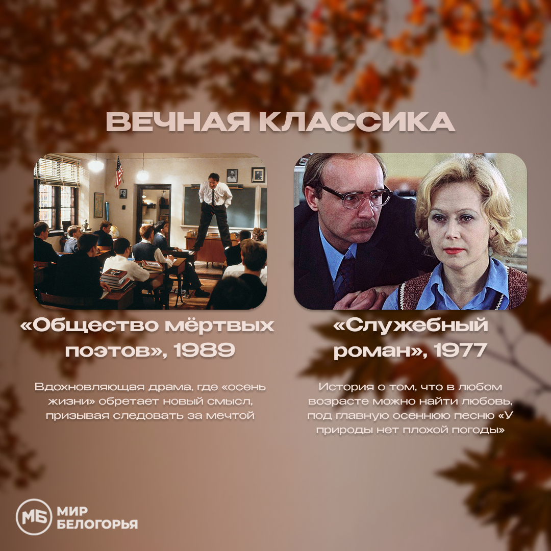 «Общество мёртвых поэтов». Вдохновляющая драма, где «осень жизни» обретает новый смысл, призывая следовать за мечтой.