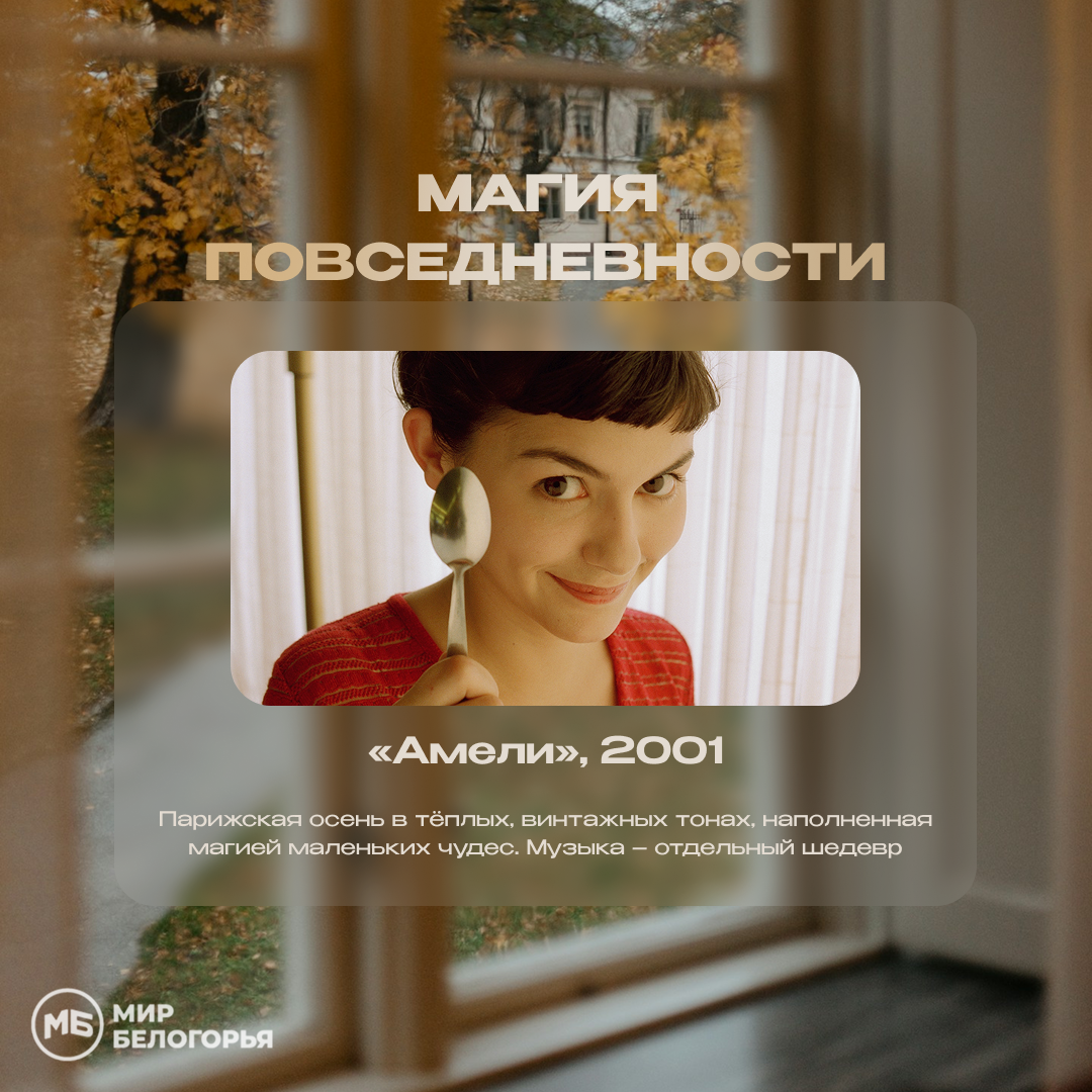 «Амели» – парижская осень в тёплых, винтажных тонах, наполненная магией маленьких чудес.Музыка – отдельный шедевр.