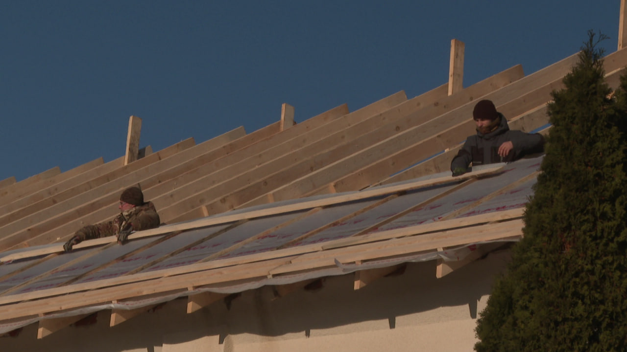 «На сегодня уже кровля была старая демонтирована. Стропильная система новая, уже укреплена частично. Это при данном виде выполненных работ уже возможно тянуть плёнку, чем мы и занимаемся в настоящий момент. Если всё благополучно сложится, то возможно уже 28 начнем монтаж металлочерепицы, а там уже всё будет зависеть от погоды, а также от оперативной обстановки», – отметил начальник участка подрядной организации Пётр Гламаздин.