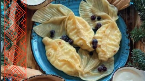 Угощение родом из села Тростенец Новооскольского округа. Вареники-вырезубы с начинкой из чёрной смородины слеплены в форме редкой рыбы, которая раньше водилась только в реке Оскол и подавалась к царскому столу.